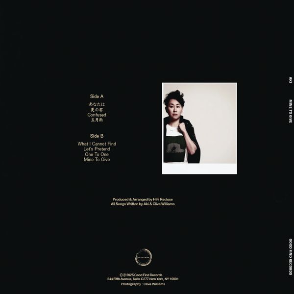 Mine to Give is a soulful explosion of funk, disco and R&B. A homage to the Japanese City Pop genre that helped define her style. Aki a Kyoto native has delivered a project that lends a modern twist to the sounds and vibes that filled her life as a young girl growing up in Japan. A new genre of 'Post City Pop' is encapsulated with this distinctive and unique offering.